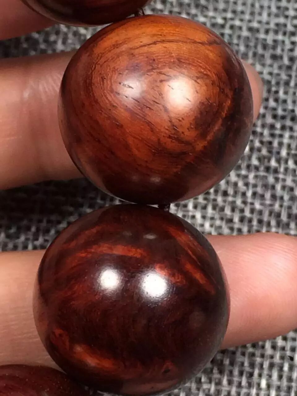 上面这颗珠子有一点部位偏黄,则是紫檀素略微缺失,这种珠子氧化到最后,珠子会偏黄,而非发黑紫色。(不过氧化到最后则另有一番美感)