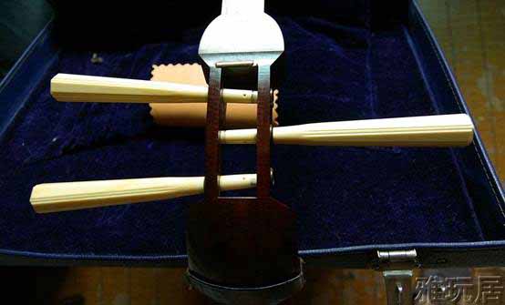 中国人所熟知到这批量要追溯到2010年3月,当时在北京市场出现了一批紫檀老料, 起初几乎没有木友注意这批日本进口紫檀材料的型状组合,后来经过相关人士从从日本带回来的信息越来越多,逐渐国内木友的断断续续的认识连成了线,此料即是制作日本人稱作“三味线”、咱們叫“三弦儿”的原材料,通過對原料形狀的拼接與“三味线”的直观对比,以及通过津轻三味线会所展馆内拍摄展品得到了吻合一致的答案。在料堆中发现的加工了一半的琴头、(行内称作瓦子)以及没被卖到北京的弦把、当然还有价值最高的琴杆。
